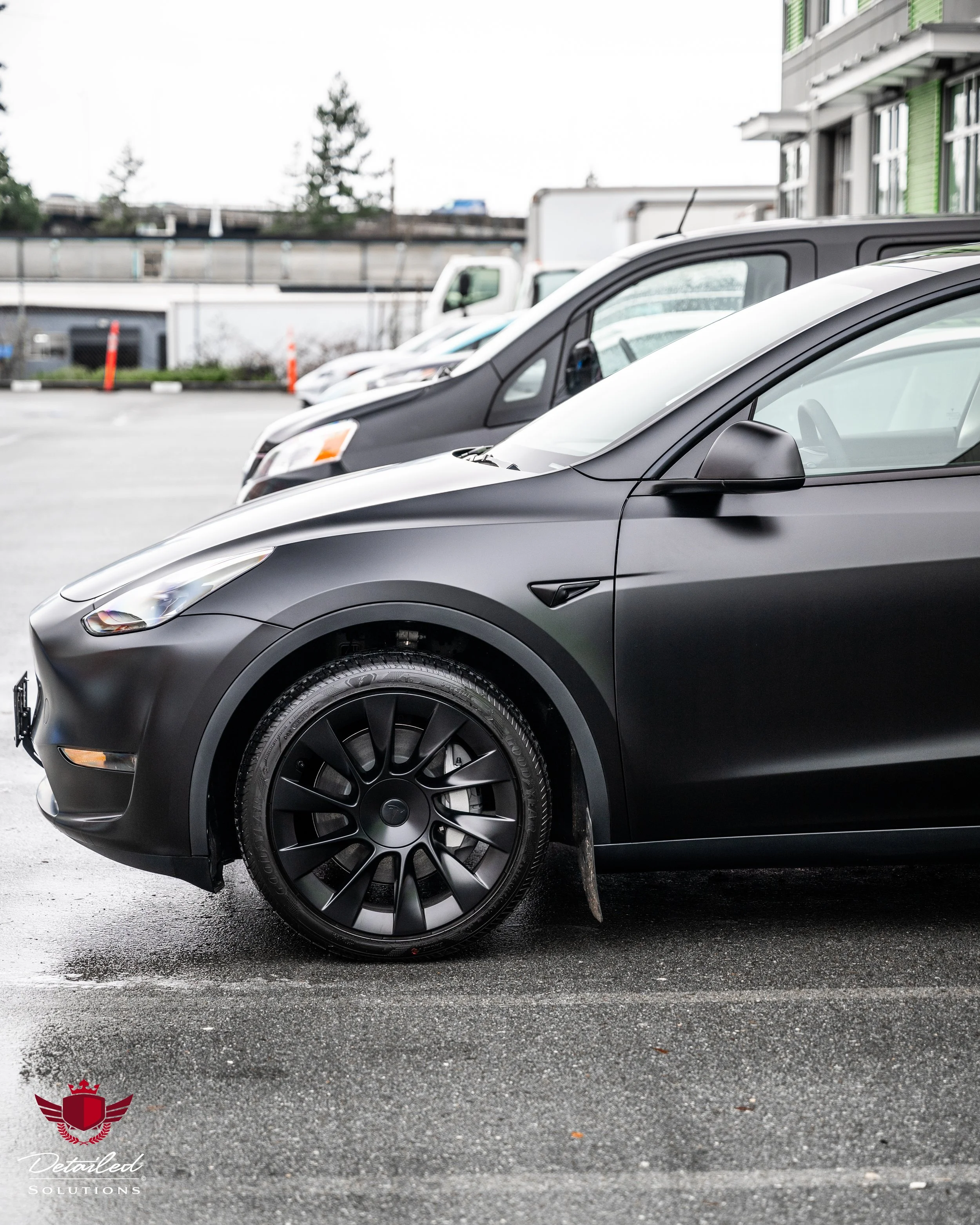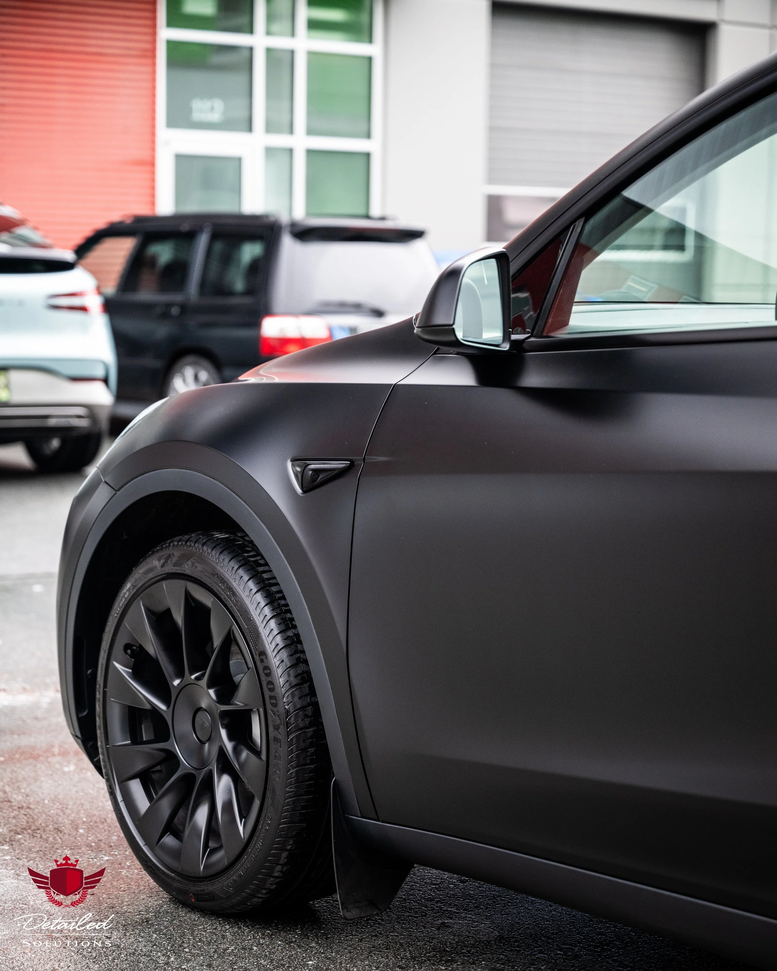 It’s important to remove badges, emblems, body trim, and other vehicle components to create a seamless, near invisible finish. Vehicle parts are re-installed to OEM Tesla standards.